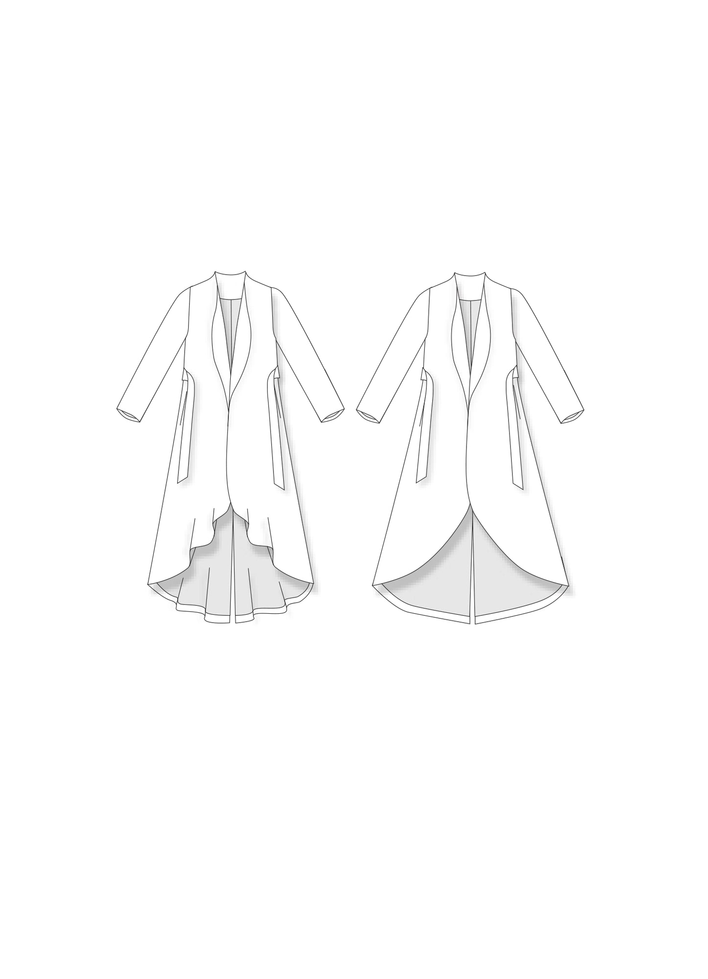 Patron proposé en deux longueurs, ici présenté en longue, vous trouverez une version petite stature (utilisable également en version manteau midi)